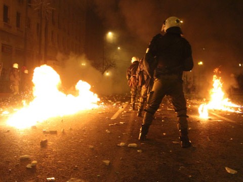В Афинах митинги вновь перетекают в массовые беспорядки. В городе горят магазины, банки и кафе, демонстранты пытались поджечь здание казначейства. Десятки человек пострадали или задержаны полицией. По данным властей, в выступлениях участвуют 80 тысяч протестующих.